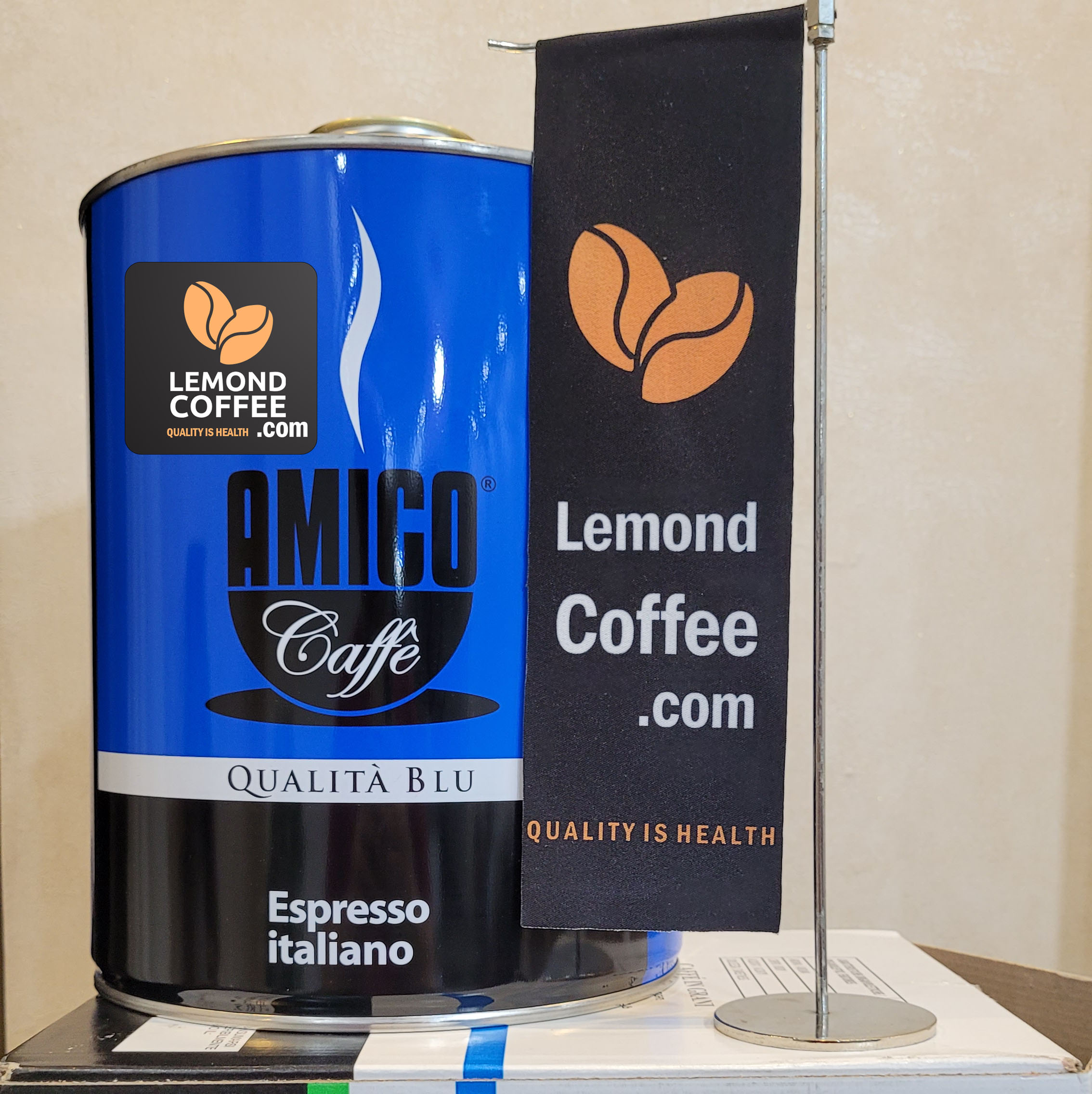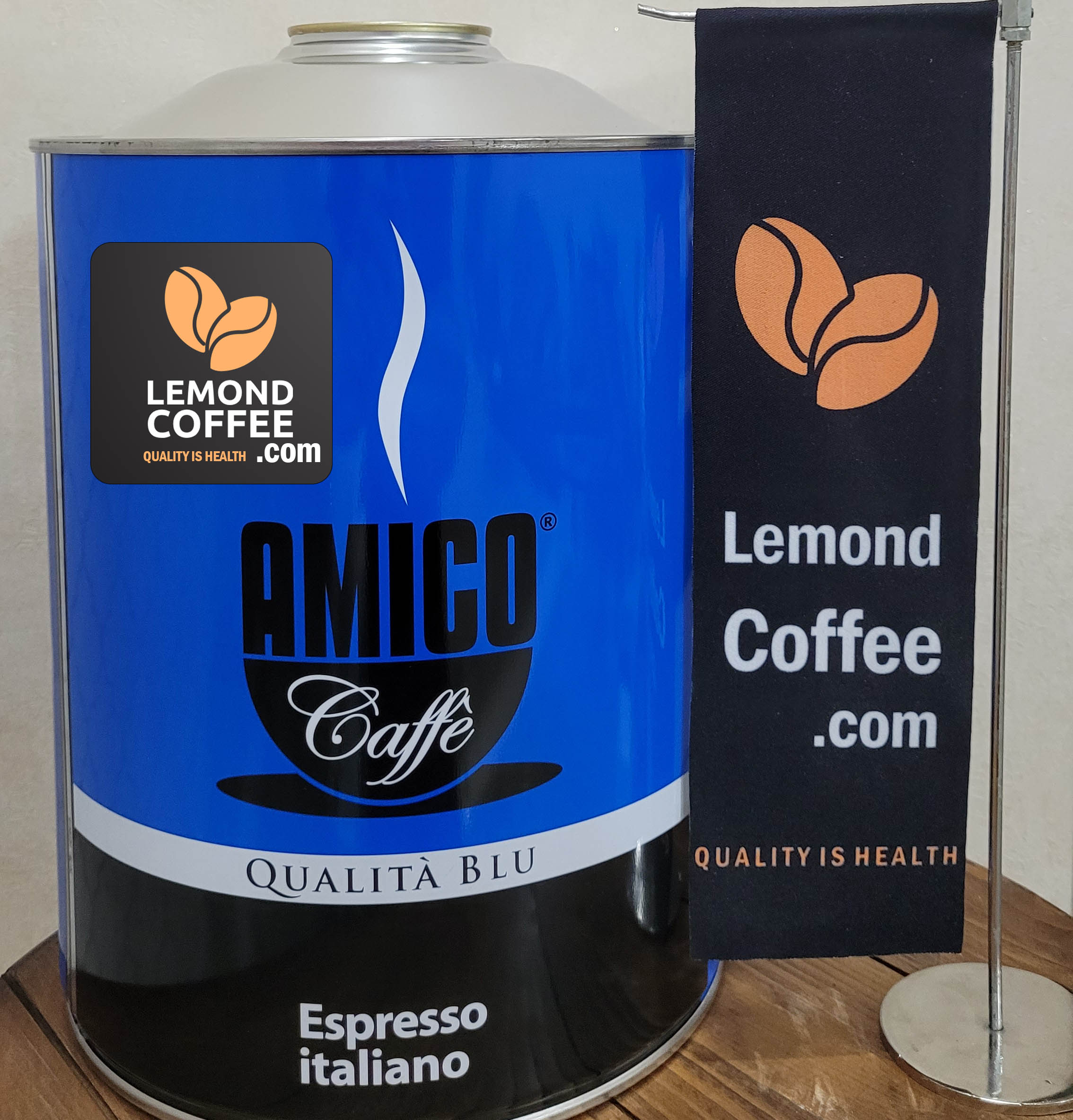 سیلندر قهوه آمیکو آبی محصولی از ایتالیا از بهترین دانه های قهوه ربوستا و عربیکا با طعمی شکلاتی و کافیین فوق العاده زیاد یک ترکیب قهوه برای ورزشکاران و دوستداران کافیین به شمار میرود. این قهوه با ترکیب 90% ربوستا و 10% عربیکا درست شده است که طعمی قوی و تلخ همراه با کرما عالی و بادی قوی و کامل پیشنهادی عالی برای طرفداران قهوه فول کافئین میباشد.
