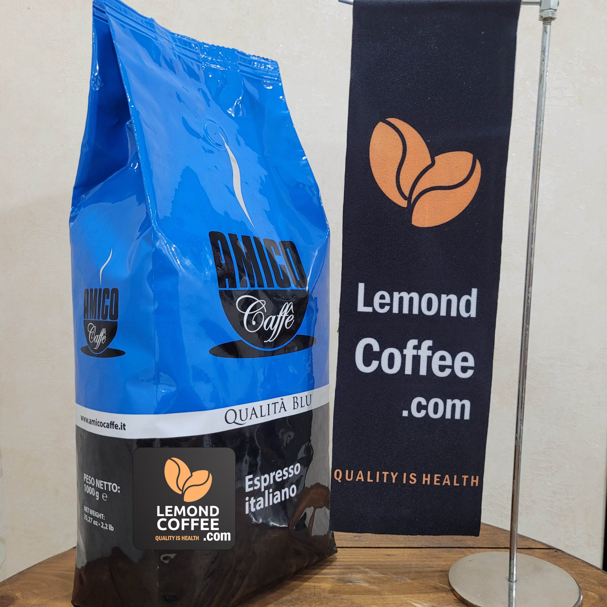 برند آمیکوی ایتالیا با تجربه و خلاقیت بالا ، بدون کمک چندان از دانه عربیکا، موفق به تولید قهوه ای خاص شده است که از لحاظ عطر و طعم با برندهای دیگر با ترکیبهای 10% عربیکا و 90% ربوستا و از لحاظ کافئین و بادی و کرما با دانه های 100% ربوستا برابری می کند و فول کافئین (انرژی درینک) است و همین قضیه قهوه آمیکو آبی را خاص و پر مشتری کرده است. قهوه آمیکو آبی اسیدیته پایین دارد و رست آن دارک می باشد. تجربه ای بالای شرکت قهوه آمیکو در انتخاب و ترکیب با کیفیت ترین دانه های قهوه و دستگاه های رست پیشرفته قهوه این شرکت باعث تولید قهوه های بسیار با کیفیت آن شده است.