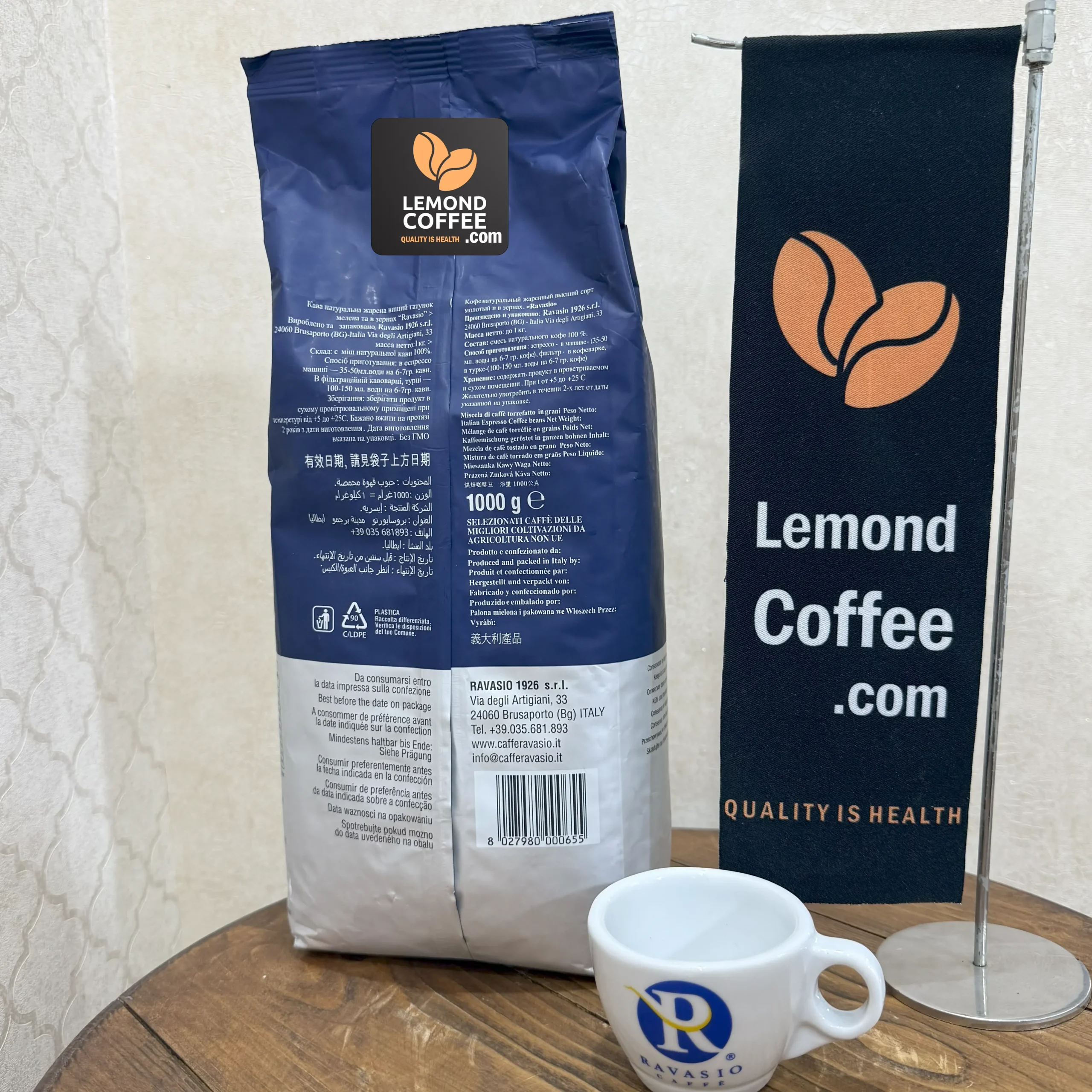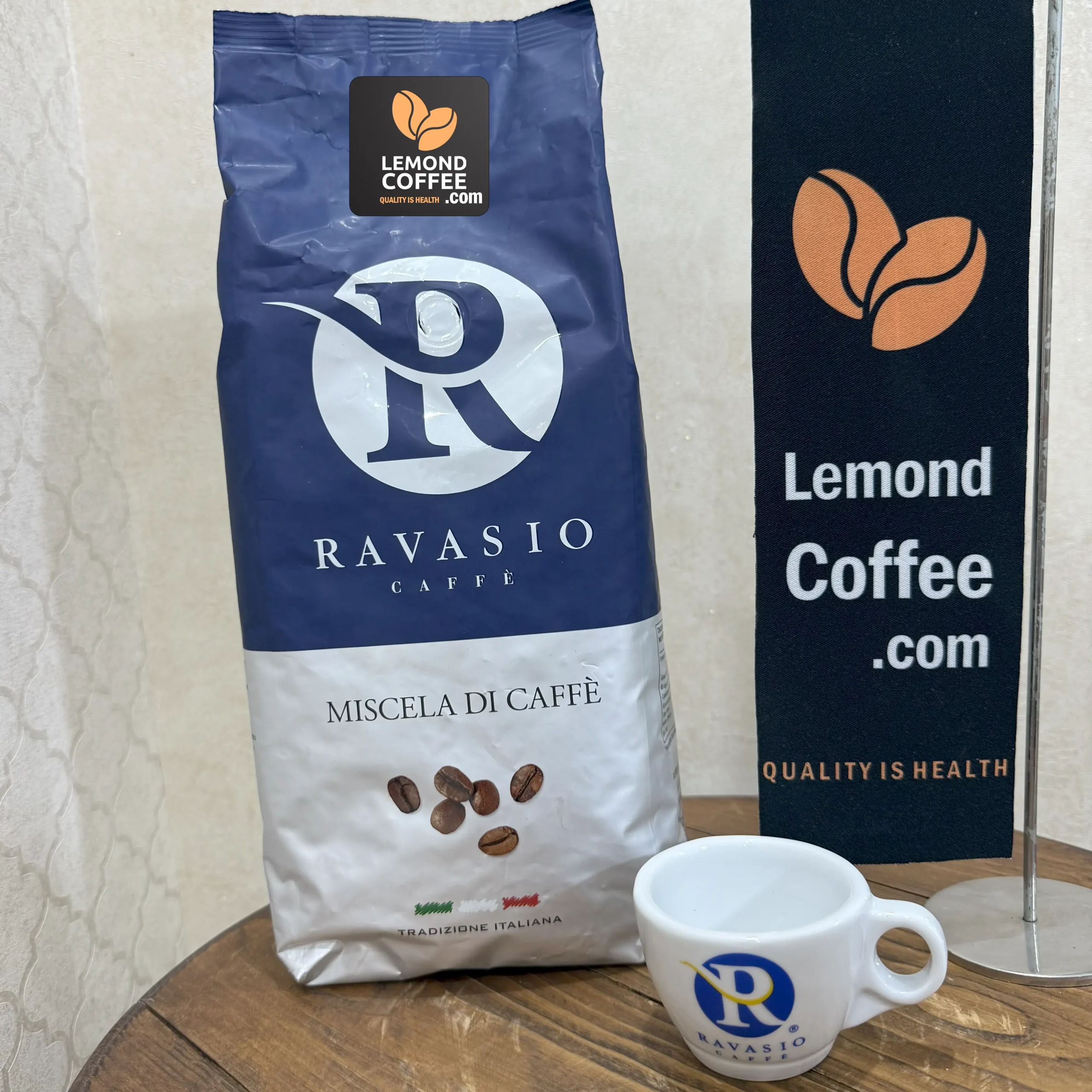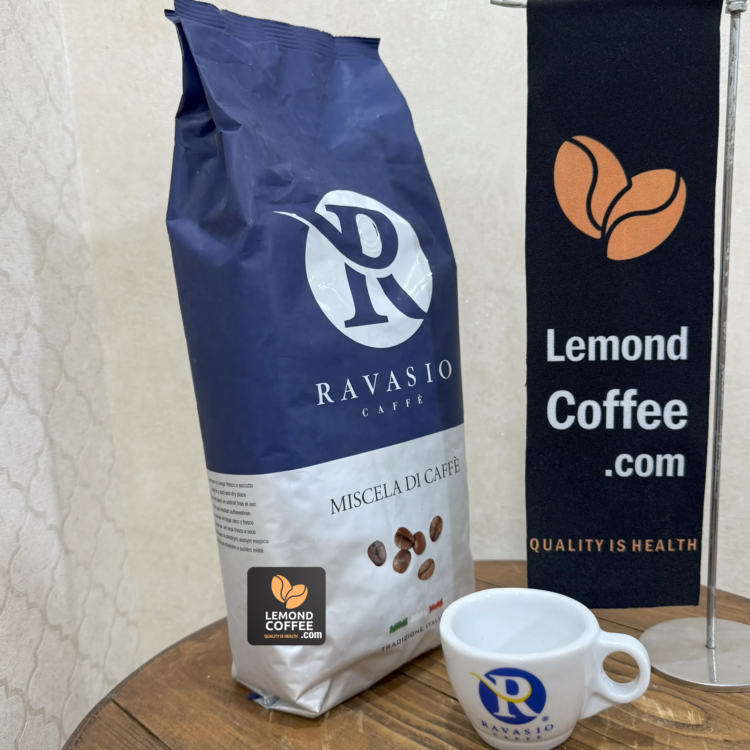 قهوه راوازیو بلو (Ravasio Blu) با ترکیب ۵۵٪ روبوستا و ۴۵٪ عربیکا؛ با بافتی پر و لطیف، عطر کاکائو و نتهای نان تستشده و آجیل — مناسب اسپرسو و کاپوچینو
