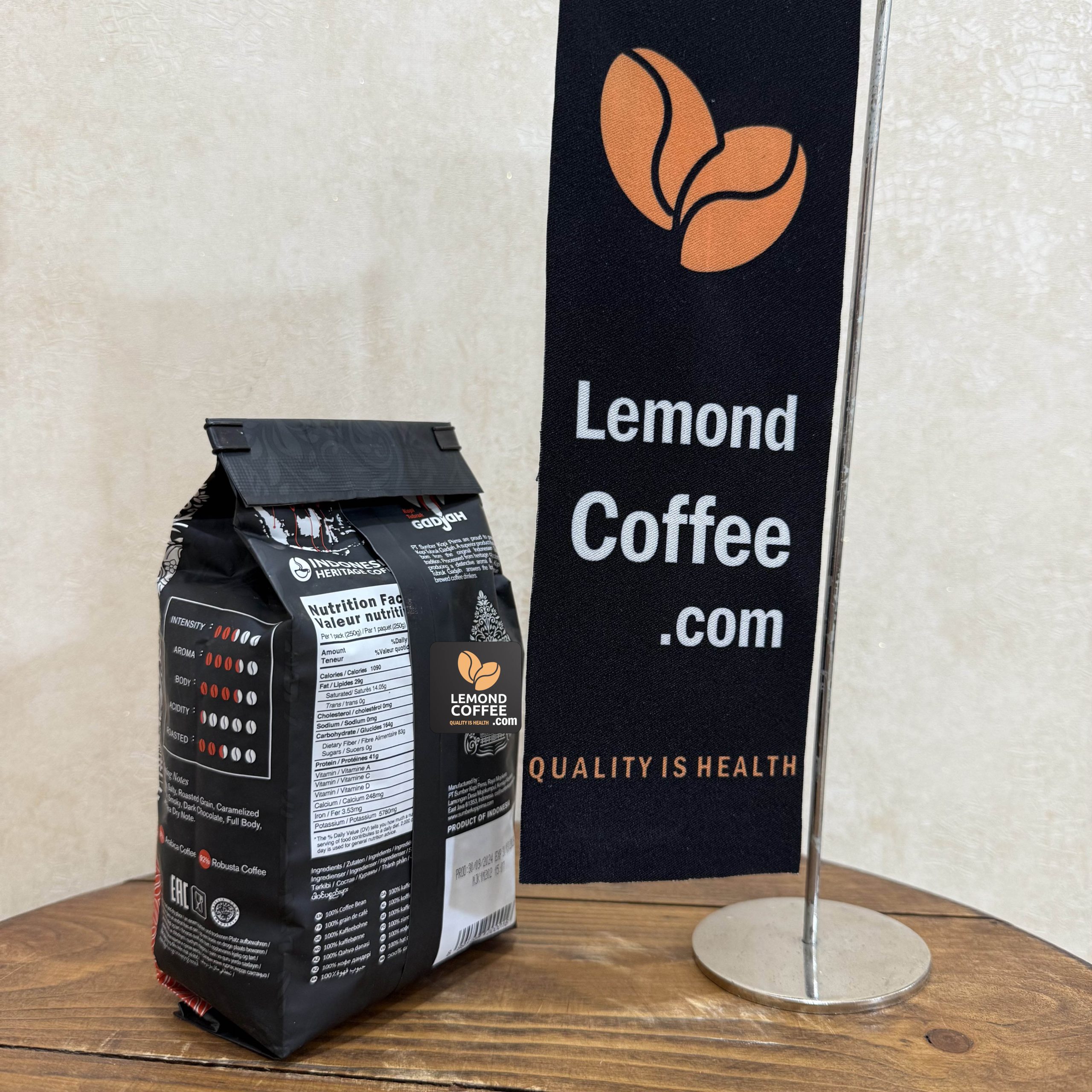 این قهوه با دقت فراوان از بهترین دانههای روبوستای منطقه گادجاه (Gadjah) اندونزی انتخاب شده است. نام “فیل گادجاه” نمادی از قدرت و استقامت است که به خوبی ویژگیهای این قهوه را توصیف میکند.