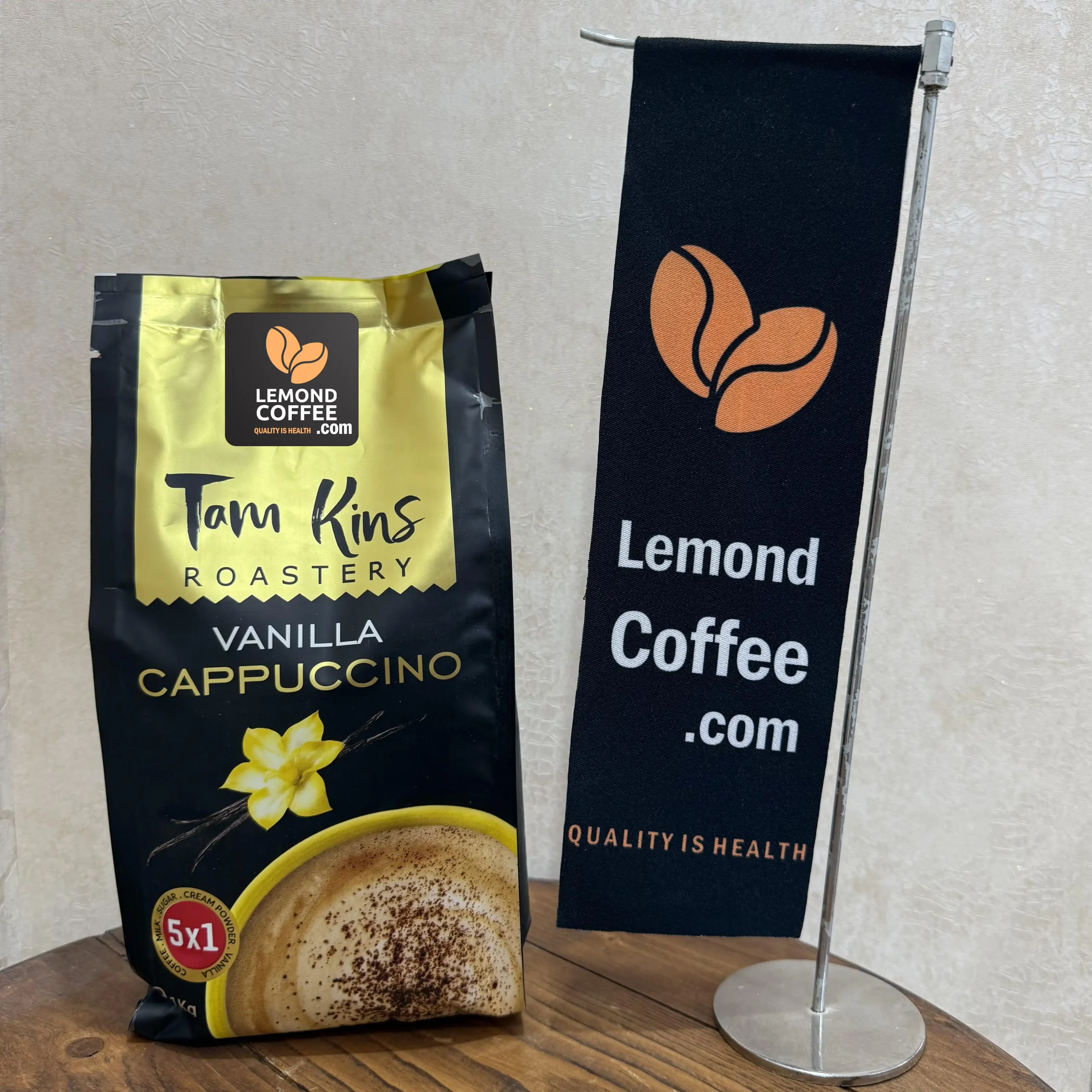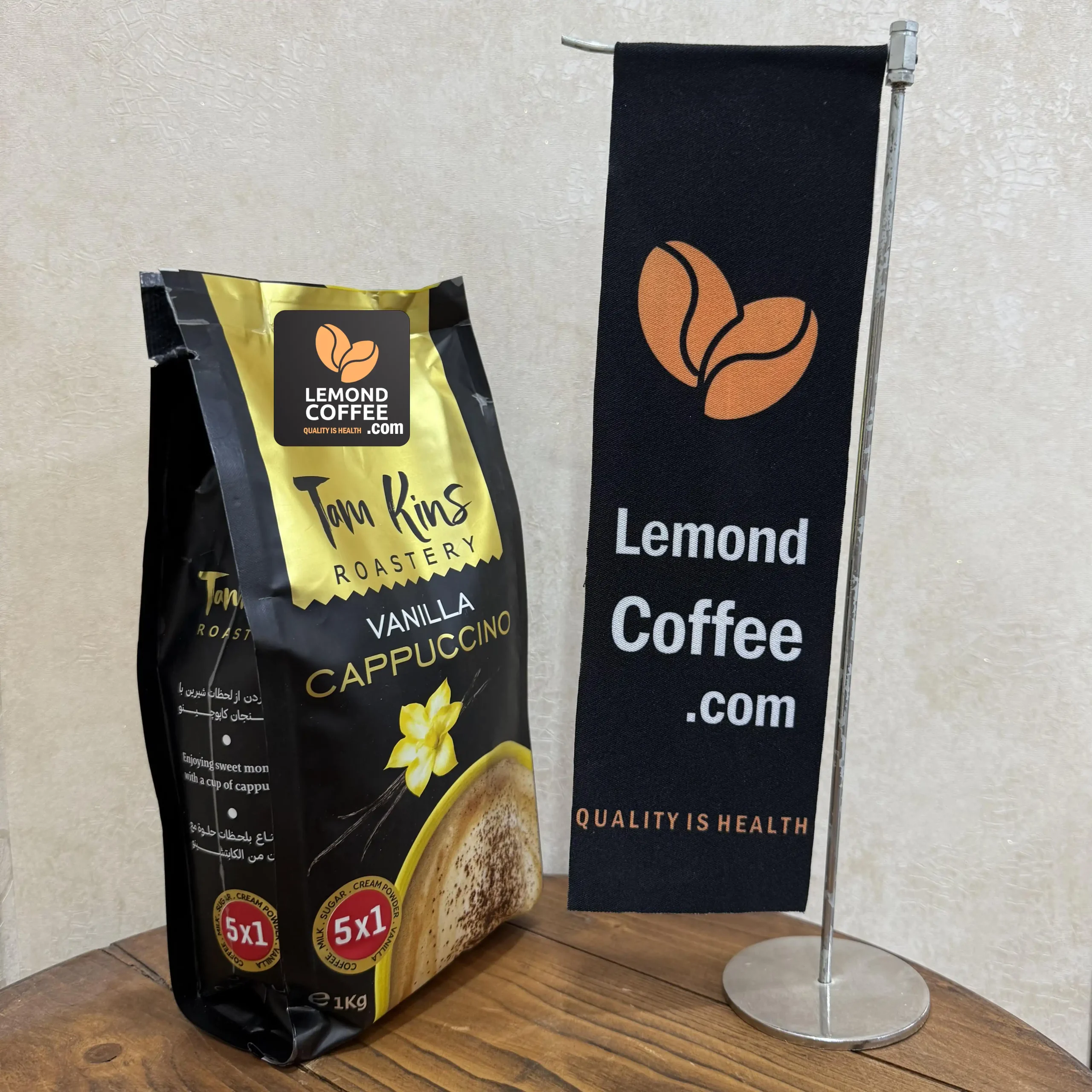 پودر کاپوچینو وانیلی تام کینز، ترکیبی از اسپرسوی غنی و رایحه طبیعی وانیل؛ نوشیدنی فوری با بافت خامهای، بهترین انتخاب در لموند کافی
